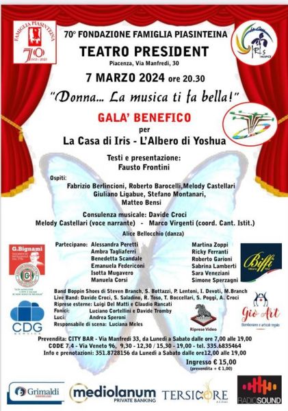 Il ricavato sarà devoluto a La Casa di Iris e all'Albero di Yoshua.